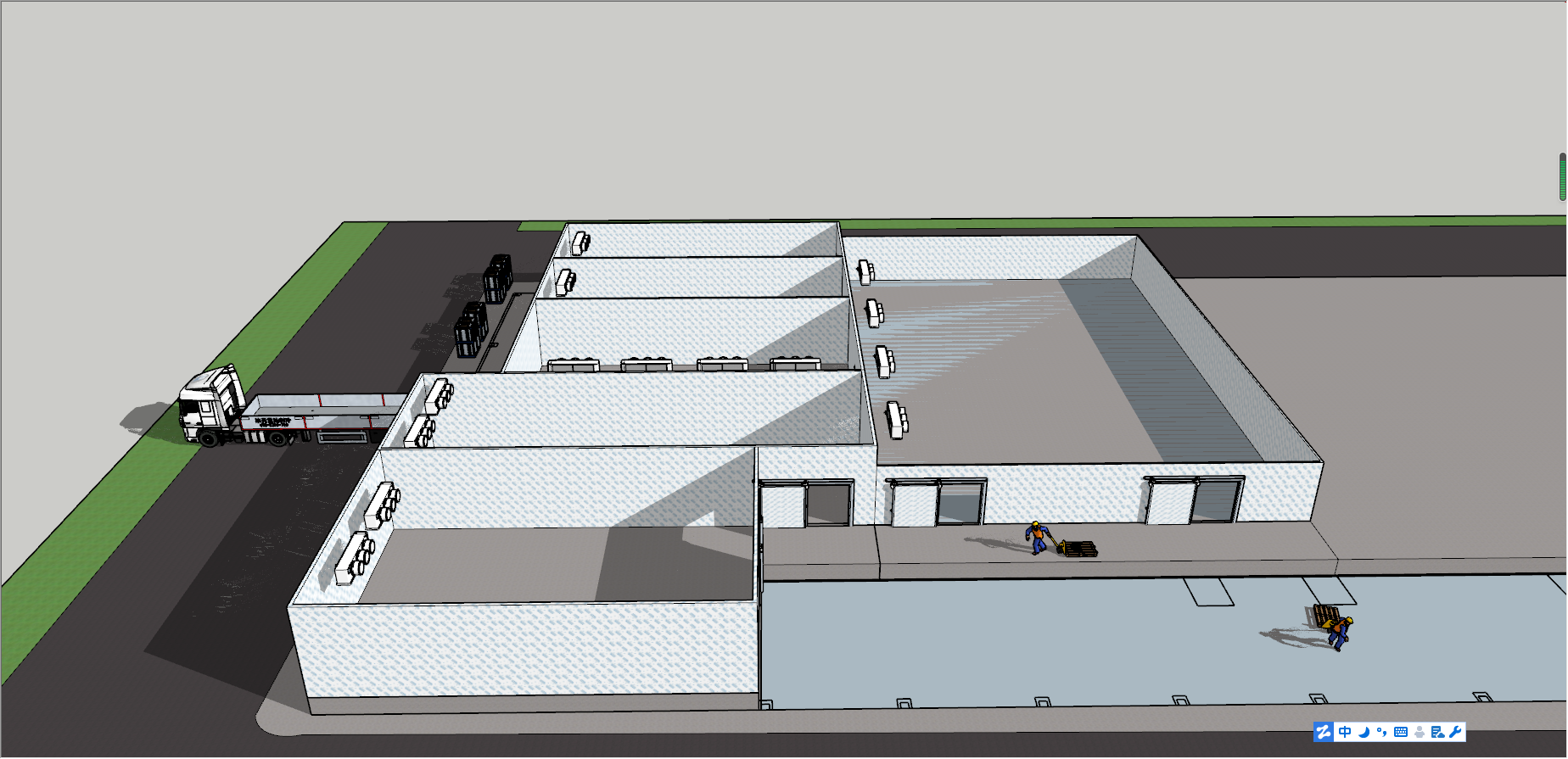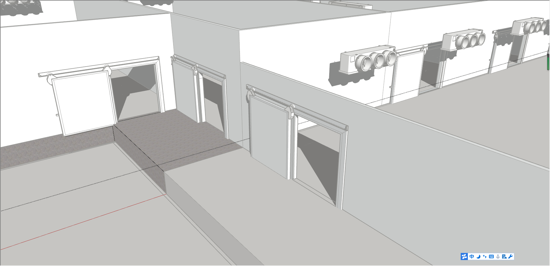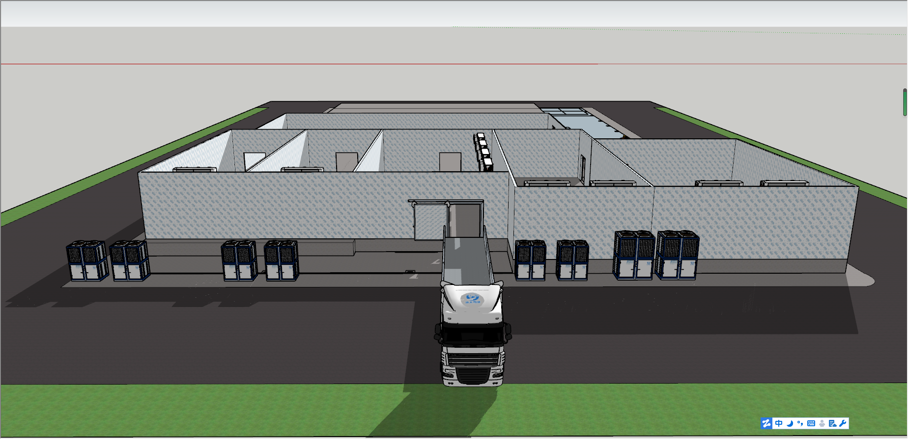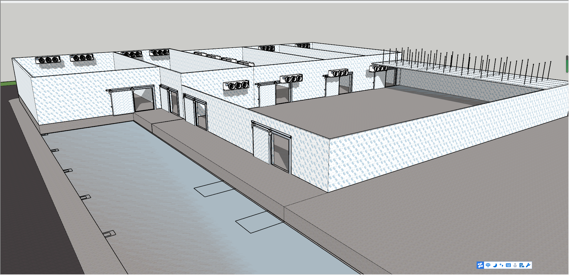 3 號冷藏庫儲存白條分割肉,考慮到白條熱量大,制冷機組選用兩臺美國艾默生谷輪 ZB114KQ 頂出風箱式一體機制冷機組。艾默生谷輪銷量名列前茅,進入國內(nèi)早,能耗比優(yōu),靜音節(jié)能。內(nèi)置熱保護,極大增加壓縮機壽命。選用一體式冷凝器,散熱面積大,美觀度高,壓縮 機保護好,減少維護成本。蒸發(fā)器冷風機選用四臺DD140高拉伸風筒,成倍增加換熱量,降溫速度快,送風距離遠。
