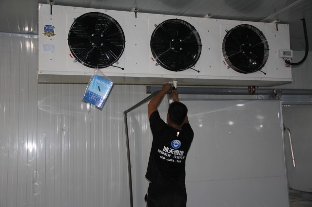 4 號冷藏庫儲存蔬果,制冷機組選用一臺美國艾默生谷輪ZB114KQ頂出風箱式一體機制冷機組。艾默生谷輪銷量名列前茅,進入國內(nèi)早,能耗比優(yōu),靜音節(jié)能。內(nèi)置熱保護,極大增加壓縮機壽命。選用一體式冷凝器,散熱面積大,美觀度高,壓縮機保護好,減少維護成本。蒸發(fā)器冷風機選用一臺 DD200 高拉伸風筒,成倍增加換熱量,降溫速度快,送風距離遠。
